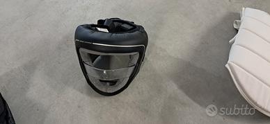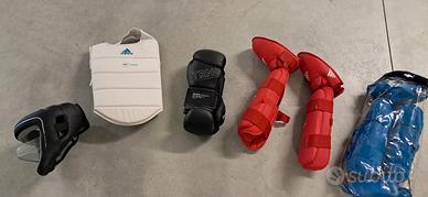 vendo protezioni e casco per disciplina kumite del karate in ottime condizioni, quelle azzurre mai usate più borsone compreso
