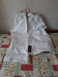 Vendo 2 kimono 2x 150 cm. 8 cinture. Paragioielli sezione 26 e protezioni complete, mai usate, praticamente nuove, misura m. Prezzo non trattabile. E' un affarone
