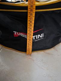 2 borse Tubertini che possono essere usate per trasporto di accessori, abbigliamento, pesci e portapasture, una taglia Large e una medium.
