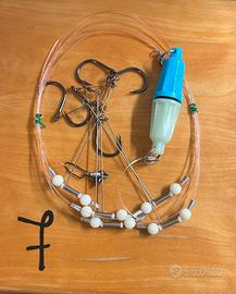 Vari articoli per 'pesca grossa' numerati in foto: Foto 1-2) Porta canne da barca in acciaio inox, con attacco a parete (obliquo 25€, orizzontale 30€) Foto 3-4) Porta canna in acciaio rotanti 45€/cad. Foto 5) Pesci artificiali da traino, con ami, 8€ piccoli, 10€ grandi. Foto 6) Esche artificiali con ami, traino da 5€ a 8€ Foto 7) Terminali artificiale in acciaio a traino con 5 ami: 20€ Foto 8) Terminali da traino in teflon 8€ Premetto che gli articoli non sono miei e non sono un intenditore, per cui, nel caso, riferisco. Disponibile alla spedizione