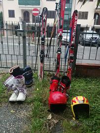 Sci Carving salomon rossi 130 e 135 cm con bastoni GARA 110 eu , scarponi rossi35 euro n 39 o n 42 Euro 25 Caschi 4