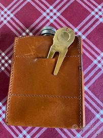 Borraccia in acciaio rivestita in pelle con set per gioco Golf