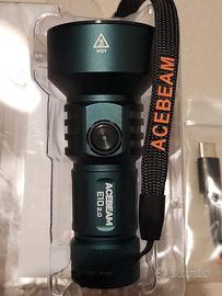 Torcia compatta Acebeam E10 2.0 colore verde. Condizioni estetiche e funzionali pari al nuovo, solo testata per verificarne il funzionamento. Completa di tutta la dotazione originale. Dati Principali: Lumen: 1200 max Tiro: 715 metri Batteria: Inclusa 16340 con porta USB-C Coda: Magnetica Stato: Come nuova, solo testata