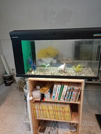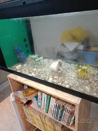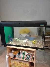 cedo acquario in ottime condizioni le misure sono avanti cm 80, profondo cm 30, altezza cm 45. È completo di filtro con relativi materiali filtranti e pompa di ricircolo, luce funzionante, arredamento e sabbietta come da foto. lo cedo a euro 70. chi è interessato può chiamare questo numero 3387457294