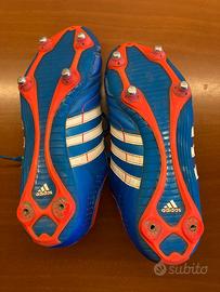 Vendo Adidas 11nova TRX SG, colorazione originale Blue/Solar Zest. Un modello classico per chi ama la sensibilità del tocco in pelle, molto simile alla serie 11pro di Toni Kroos. Taglia: 42 (8.5 US / 8 UK). Materiale: Tomaia in morbida pelle per un comfort eccellente. Suola: SG (Soft Ground) ideale per campi in erba naturale morbida o fangosa. Condizioni: Usate con normali segni di usura visibili in foto (scorticature superficiali sulla punta). Nota importante: Mancano 3 tacchetti in alluminio (facilmente reperibili come ricambio standard adidas). Scarpe ancora solidissime, ottime per allenamento o come secondo paio per i campi pesanti invernali.
