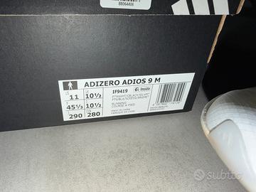 Vendo Adidas Adizero Adios 9 come nuove. Utilizzate per 32km . Perfette. Numero EU 45 1/3 , US 11 , 29cm. Le scarpe vengono igienizzate prima della spedizione. Consegnate nella scatola originale Adidas.