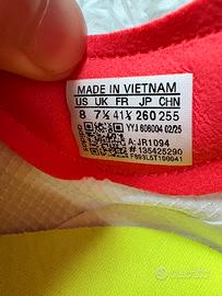 Vendo Adidas Adizero Adios Pro 4, il modello d'élite con piastra in carbonio di ultima generazione. La scarpa è assolutamente NUOVA, mai uscita di casa e mai usata per correre. CONDIZIONI E CALZATA: Le scarpe sono state solamente provate una volta in casa per testare la taglia. Purtroppo per me il 41 1/3 veste leggermente piccolo, motivo per cui le vendo subito per riacquistare il numero corretto. La suola è perfetta e intonsa, i cartellini sono ancora attaccati. DETTAGLI TECNICI: • Taglia: 41 1/3 EU / 7.5 UK / 26 cm. • Modello: Adios Pro 4 (Colorazione 2025/26). • Tecnologia: Intersuola in Lightstrike Pro e barre EnergyRods 2.0 per la massima propulsione. • Incluso: Scatola originale integra e cartellini. ✅ GARANZIA DI ORIGINALITÀ: Prodotto 100% originale garantito. Codice articolo JR1094 verificabile su etichetta e box. Come da standard Adidas per i modelli autentici, ogni scarpa riporta il proprio codice seriale univoco differente nell'etichetta interna. Spedizione rapidissima con imballaggio accurato per proteggere la scatola. Ottimo affare per chi cerca il top di gamma risparmiando sul prezzo di listino.