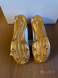 Cloud White/Gold. Lightweight synthetic upper, rubber non-slip sole, Adizero tech. Second-grade: may show minor cosmetic marks (no functional issues). Original box included.