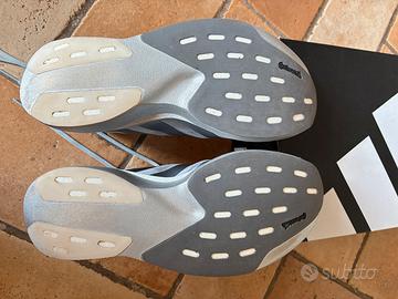 Causa numero errato vendo scarpa da running Adidas Evo SL con SOLI 15km su pista (certificati su Strava, foto su richiesta) praticamente nuove come si può vedere dalla foto della suola. Misura 46 (US 11.5), colore argento. Ancora presente il cartellino di acquisto.