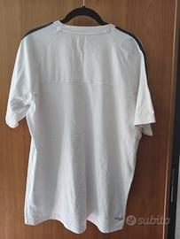 Maglietta Adidas a maniche corte, colore bianco, con tre strisce nere sulle spalle. Tessuto ClimaLite in cotone. - Perfetta per l'estate. - In ottime condizioni. - Logo Adidas ricamato sul petto.