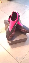 bellissime scarpette da calcio / calcetto con tacchetti senza lacci.. avvolgenti e nere e fucsia