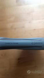 Adidas Essnova Carbon Attack racchetta padel a forma di diamante con lama liscia e piatto ruvido, adatta a giocatori di padel avanzati che amano attaccare pur mantenendo il controllo e il comfort. oversize, un elevato equilibrio con una grande superficie tattile fornisce molta potenza quando si attaccano le palline Peso: 360-375 grammi Spessore della lama: 38 mm Dimensione della lama: 480 cm Lunghezza: 45,5 cm Equilibrio: 285 mm (Head Heavy)Tecnologie: il carbonio 3K ha una maggiore flessibilità; in combinazione con EVA Soft nucleo questo fornisce una potenza sufficiente, ma con grande comfort e controllo; la tecnologia ExoSkeleton con più carbonio nel telaio e nel core, fornisce più potenza. Colore: nero - argento Materiale: carbonio - schiuma. Piccola scheggiatura sul manico.
