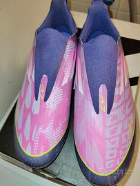 TAGLIA 37 e 1/3. Vendo perché a mia figlia stanno larghe sul tallone. Sono state usate solo una volta per andare dallo spogliatoio al campo ma poi subito cambiate quindi mai usate in allenamento o partita. Come si vede dalle foto sono ancora nuove