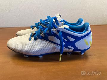 Vendo Adidas Messi 15.3 in colorazione White/Prime Blue, modello dedicato al fuoriclasse argentino. Scarpe tecniche ideali per chi cerca agilità e trazione. Taglia: 44 EU (9.5 UK / 10 US). Suola FG/AG: Progettata per dare il massimo sia su erba naturale che su campi sintetici di ultima generazione. Condizioni: Eccellenti. La tomaia è integra e i tacchetti sono in perfetto stato. Tecnologia: Superficie messiTOUCH per un grip perfetto sul pallone. Scarpe originali del 2015, introvabili in queste condizioni. Pronte per giocare!