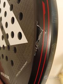 Adidas Metalbone 3.3 Ale Galan una racchetta a dir poco stupefacente,una tra le migliori racchette del circuito padel a livello mondiale. Una racchetta studiata e progettata per giocatori di livello avanzato che vuole dominare il campo in ogni suo movimento ed è sempre alla ricerca della chiusura del punto. Piatto in fibra di carbonio in 18k con un elevato spin. Racchetta in condizioni perfette piatti integri al 100% una solo ammaccatura laterale ma non è una crepa,il tutto come si vede da foto in modo superficiale che nn compromette la sua efficienza. Racchetta munita di sacca,pesetti e chiave per modificare il peso racchetta. Racchetta controllata, provata e garantita. Per altre info e foto nn esitate a contattarmi.