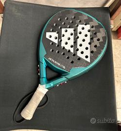 Pala padel adidas metalbone ctrl 3.3 con alcuni segni di usura, nessuna crepa e nulla che possa impedire un uso ottimale … con sacca originale e pesi, adatta giocatori di livello medio