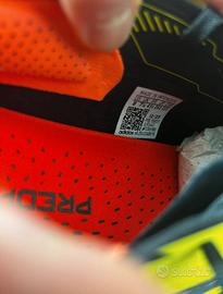 Vendo scarpe da calcio Adidas Predator FG (tacchetti fissi per erba naturale), colore giallo fluo con dettagli rossi e neri.