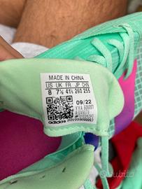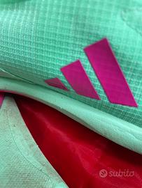 Scarpe da atletica Adidas chiodate, perfette per la corsa. Sono di colore verde menta con dettagli rosa e viola. - Colore: Verde menta, rosa e viola - Marca: Adidas - Tipo: Scarpe chiodate da atletica. taglia 38/39. usata una sola volta.