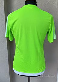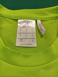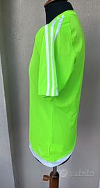 T-shirt sportiva Adidas originale in colore verde fluo. Tessuto tecnico traspirante Climalite, ideale per running, palestra o calcio. Ottime condizioni. Taglia: S (vestibilità regolare) Colore: Verde neon con dettagli bianchi Misure: Lunghezza 70 cm | Torace 50 cm Materiale: 100% Poliestere tecnico