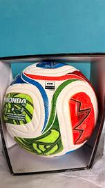 Pallone ufficiale certificato FIFA Quality Pro, lo standard più alto utilizzato nelle competizioni professionistiche. Progettato da Adidas per offrire massima precisione, controllo superiore e prestazioni da livello mondiale, identico ai palloni utilizzati nelle partite ufficiali.