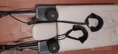 Aeropilates Reformer 435 in ottimo stato, completo di barra poggiapiedi e pedana elastica, con manuale istruzioni e DVD esercizi. Ha solo l'elastico giallo un po' allentato. Ripiegato occupa poco spazio e si apre molto facilmente.