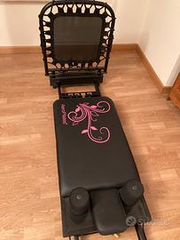 Vendo AeroPilates Reformer modello 435 Edizione Rosa, completo di rebounder cardio, corde regolabili e poggiapiedi imbottiti.