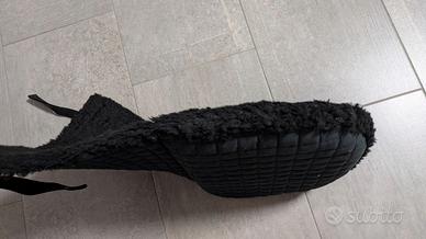Materiale in tessuto trapuntato nella parte superiore per una distribuzione uniforme della pressione e morbido pelo sintetico/lana sul bordo e sul lato a contatto.