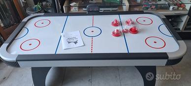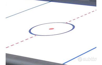 -La superficie di gioco ha tanti piccoli fori attraverso i quali viene convogliata l’aria emessa dal potente ventilatore posto al di sotto. Il flusso continuo d’aria, che esce con pressione costante, crea un cuscino d’aria uniforme.