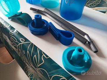 usate poco il tappo azzurro è parzialmente danneggiato ma funziona correttamente il prezzo vale per la coppia non per una sola borraccia