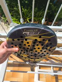 Vendo Akkeron Fenix RC, peso 369 grammi. a parte in paio di strisciate vicino al paratesta, la racchetta è in buone condizioni.