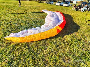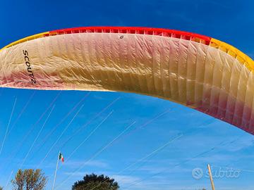 Ala REFLEX da paramotore Sky Country Scout 2 taglia 27 (80-155 KG) demo (non ha 30 minuti di volo!). Ala basica ma molto divertente e con comandi 2D di serie. Affidabilissima e duratura grazie all'utilizzo del tessuto Skytex 9017 e le line Liros