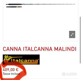 - Canna da pesca Italcanna Malindi 6/12 libbre anellata FUJI sic ovali, manico in EVA nero con marchio, con calcio smontabile in alluminio anodizzato nero black. Canna in ottimo stato, solo qualche piccolo segno da trasporto e sugli anelli.