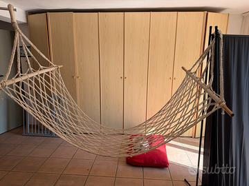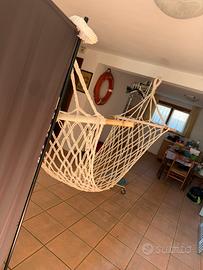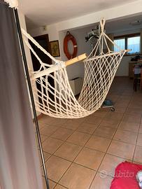 Vendo amaca in corda in buone condizioni ideale per usarla in giardino o in barca. Lunghezza aste 1 metro