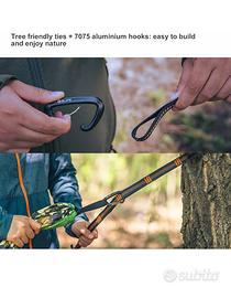 Il tessuto in nylon resistente agli strappi, le cuciture triple e i robusti moschettoni in alluminio 7075 garantiscono una lunga durata.