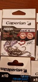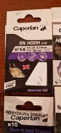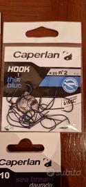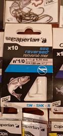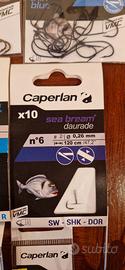 10 bustine di ami per pesca sportiva, come da foto, e 1 piombo rampone.