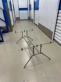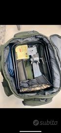 Tantissima attrezzatura per la pesca alla carpa e anche per la pesca a feeder, canne da carpa da 3 metri con mulinelli Daiwa (usati una sola volta) e bobine di ricambio. Un treppiede in acciaio inox per la canna da pesca, un sacco a pelo spesso, una stufa, borse con varie scatole di attrezzatura, una lampada notturna Coleman, un fornello a gas Coleman, un guadino per carpe e per la pesca a feeder e molti altri oggetti vari.