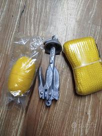 OSCULATI Ancoraggio Rampino - Acciaio zincato. Piccola ancora leggera per materassino/canotto suo. Corda 20 m gialla + galleggiante giallo