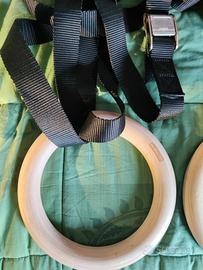 Anelli in legno in ottime condizioni adatti per training in palestra o casalingo. Per maggiori informazioni che non siano sulla scatola non esitate a scrivermi. Vendo causa trasloco.