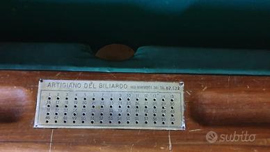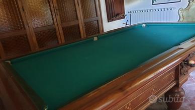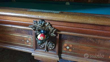Antico tavolo da biliardo con finiture in bronzo e intarsi in madreperla in buone condizioni.