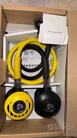 *NUOVO MAI USATO* APEKS SET ATX 40 DIN ATX OCTOPUS Il kit ATX comprende il primo stadio ATX DS4 ,l'erogatore ATX40 e anche l'Octopus.Prima che arrivasse la gamma di regolatori XTX, i modelli ATX dominavano i mari. L'ATX e' ancora disponibile oggi e offre un primo e un secondo stadio completamente bilanciato con capacita' di acqua fredda puo' essere utilizzato a tutte le temperature comprese quelle inferiori a 10 C / 50 F. Questo octopus si basa sul secondo stadio ATX con comprovata capacita' di acqua fredda e le prestazioni che ti aspetteresti da una valvola bilanciata pneumaticamente Apeks. E' dotato di un controllo venturi regolabile dal subacqueo, un coperchio anteriore giallo ad alta visibilita', elementi di accenti gialli e un tubo giallo da 36 .