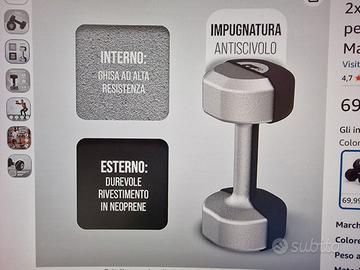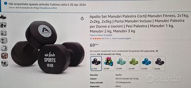 Come nuovi, vendo a metà prezzo rispetto a quello Amazon, consegna a mano a Milano in zona Stadera/Pezzotti (ho anche due manubri da 6kg e 8kg) caratteristiche prese dalla pagina Amazon: SET DI MANUBRI CORTI PER L'ALLENAMENTO A CASA - Il kit manubri palestra Apollo è perfetto per gli allenamenti a casa di potenziamento muscolare. Per garantirti un allenamento completo, il set di pesi comprende manubri da 10 kg INIZIA IMMEDIATAMENTE: il set di 2 manubri può essere utilizzato immediatamente dopo aver disimballato. Nessun assemblaggio richiesto. Dopo l'allenamento, i manubri da 10 kg possono essere riposti quasi ovunque per risparmiare spazio. MATERIALE ANTISCIVOLO - I pesi manubri sono realizzati in ghisa di alta qualità e rivestiti in neoprene antiscivolo, per assicurarti una presa ottimale anche con i manubri più pesanti da 10 kg. FACILE DA USARE - Il set manubri corti è resistente al sudore e all'acqua. Grazie al rivestimento di alta qualità, i manubri fitness sono anche facili da pulire. ALLENAMENTO INDIVIDUALE - I manubri ghisa sono particolarmente adatti per le donne, perché, grazie ai diversi pesi, possono essere utilizzati in modo versatile per i workout a casa di rafforzamento muscolare.