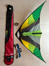 Vendo aquilone acrobatico 2 linee mod. Cirrus Emerald Dimensioni 115x51 cm Linee Dyneema 2 x25 mt Gamma di vento 4-55 km/h Come nuovo