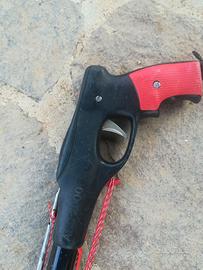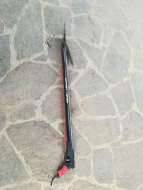 Vendo arbalete francese Cavalero Champion un arbalete datato ma molto performante FUCILE CAMPIONE DI FRANCIA NEGLI ANNI 90-2000,il primo con meccanismo e grilletto in acciaio ad altissima resistenza . Testata aperta tipo Cayman con doppio foro per 2 circolari. Asta filettata con fiocina ed arpione a vostra scelta cosa utilizzare lascio entrambi. Elastico circolare sarebbe meglio sostituirlo. la lunghezza è circa 77 cm un ottima misura ed uando aste con pinnette arretrate diventa un 80cm. Arbalete semplice efficace e duraturo si brandeggia benissimo.