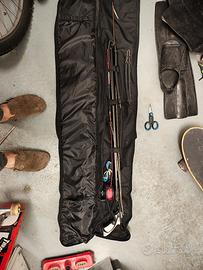 utilizzato al massimo 3 volte. perfetto. praticamente nuovo. con doppio elastico e mulinello già imbobinato. sacca con cerniera da riparare.