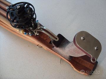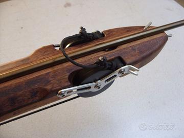 Arbalete Demoltiplicato da 91 in lamellare di okumé, mogano e zebrano con impugnatura in padouk.