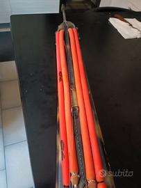 vendo arbalete doppio roller Donato Pugliese da 75 cm un piccolo mostriciattolo di maneggevolezza, brandeggio,potenza e gittata colpisce un bersaglio trapassandolo a 3,5 metri un gioiellino fantastico arbalete pronto pesca completo di asta da 7 mm doppio elastico da 14,00 mm della C4 nuovi e mulinello caricato con dynema un vero affare