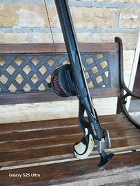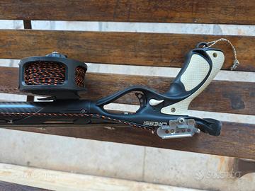 Vendo fucile Arbalete Cressi sub Geronimo Pro in carbonio lunghezza 95 completo di mulinello con metri 50 di Dynema asta 6.5 con pinnette elastico da 18 mm Sporasub..attacco telecamera sigal