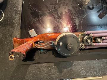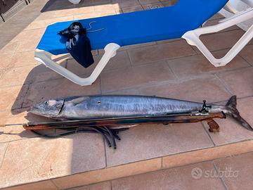 Elastici a Y da 16 mm, asta da 8mm. Mulinello con 80 metri di sagola. Vendo per inutilizzo. lo usavo per pescare nel blu con la floating line. Il pesce in foto è stato preso con questo fucile