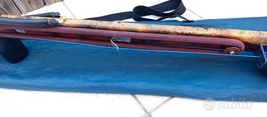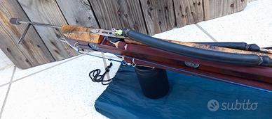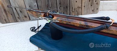 Vendo Galasub Jump 82, arbalete in legno roller con elastico aggiuntivo (quando si carica insieme a questo diventa un cannone senza compromettere la precisione,il rinculo lo assorbe la mano non si impenna),asta Devoto doppia aletta da 7mm con tre pinnette più la quarta per lo sparo in tana, elastici Sigal reactive evo da 16 mm tirati al 300% ( che volendo si può arrivare al 330%) con tre/quattro pescate all'attivo .Fucile ben bilanciato,potente, preciso e con il quale si può pescare sia nel bassofondo che in acqua libera.