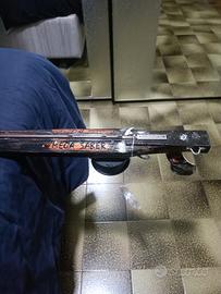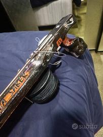 vendo arbalete Mega Saber realizzato da Giorgio Dapiran fucile dalle prestazioni impressionanti gittata fino a oltre 5 metri ,ottimo brandeggio e di una precisione assoluta fucile in condizioni pari al nuovo come potete vedere dalle foto,vendo a malincuore perché ho dei problemi di salute che non mi permettono immersioni profonde ,ma solo su bassofondo arbalete pronto pesca completo di asta da 140cm da 7,5mm triplo elastico da 16,00mm della Sigal nuovi con mulinello caricato con dynema e con sacca originale prezzo trattabile vero affare